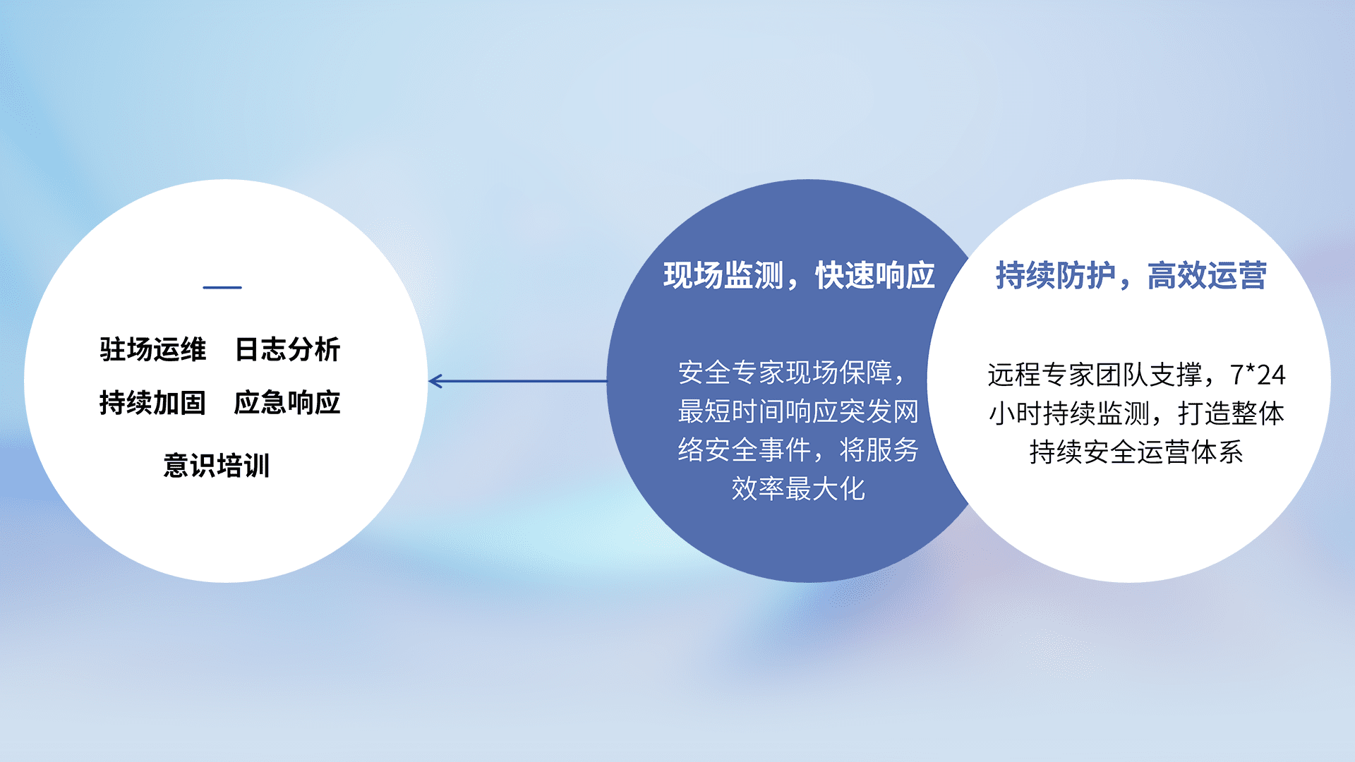 7X24小时持续监测安全事件,保持安全策略有效性,降低资产脆弱性风险,,,精准拦截黑客攻击,,,,减少被黑客利用的机会,,第一时间遏制,,降低损失。。。